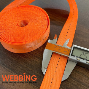 - Tên sản phẩm: Dây đai Polyester 2.5cm – Cam – 0.8T – Mỏng hơn, sần sần.